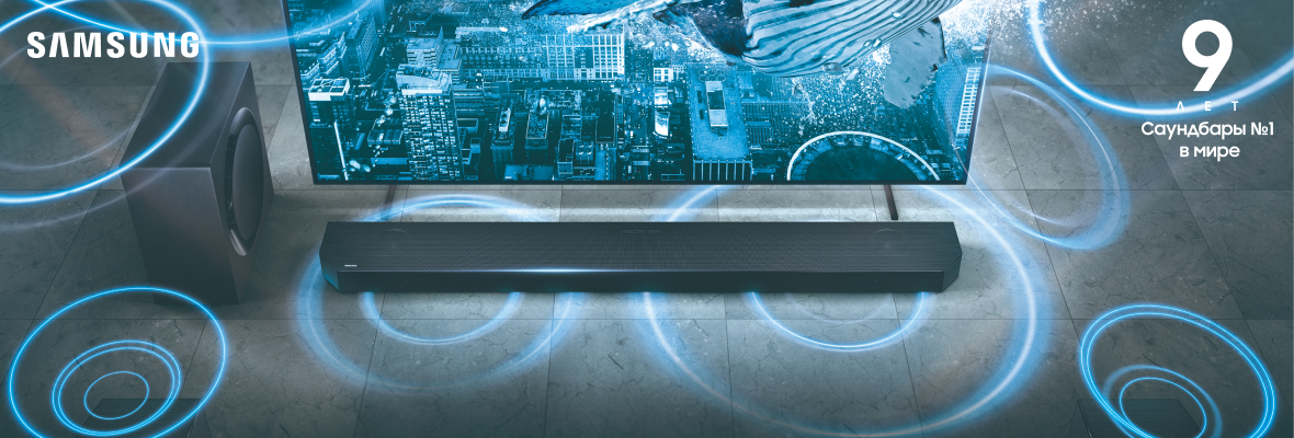Не просто слушайте звук — ощущайте его. Премиальные саундбары Q-серии выводят звук QLED TV на новый уровень. Поразительная глубина и объем звучания.