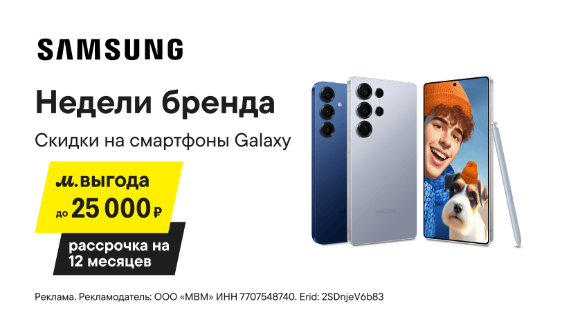 У нас есть свой календарь, и он показывает, что настали недели бренда Samsung. А значит, сейчас смартфон Galaxy ты можешь приобрести с М.Выгодой до 25 000 ₽. Отличное предложение на отличные гаджеты.Спеши, пока недели бренда не закончились.