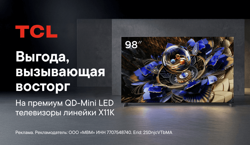 Даже премиальные телевизоры могут приносить выгоду. Особенно если это QD-Mini LED ТВ TCL линейки X11K. Широкие диагонали, на которых ты будешь видеть ультрареалистичное видео. Потрясающий своей натуральностью звук. Целое море возможностей. И выгода, которая идёт в комплекте, при покупке у нас.