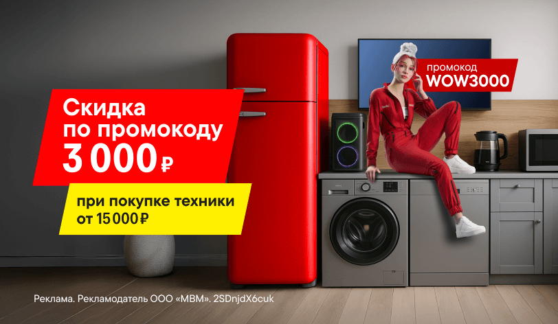 Если ты делаешь у нас покупку от 15 000 ₽, то запомни... нет не волшебное слово, а реальный промокод: WOW3000. Потому что он принесёт тебе выгоду 3 000 ₽. Работает для самых разных категорий товаров. Обязательно воспользуйся!