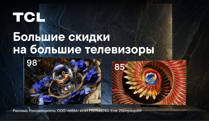 Подобное притягивает подобное. Особенно у нас: есть большой телевизор TCL — к нему притянулась и большая скидка. Спеши купить, пока законы выгодной физики не поменялись.