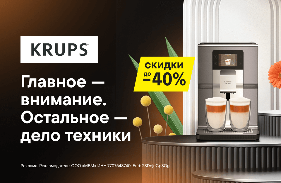Так и хочется попробовать что-то новенькое.Кофемашины KRUPS — простое управление и профессиональное качество.Забери скидку до 40% на кофемашины и кофеварки Krups до 16 марта.