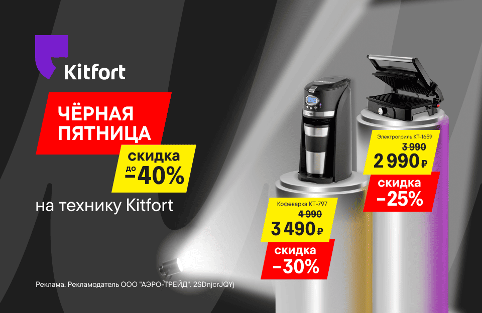 Мы спокойны как киты. Ведь техника Kitfort — качество, стиль и доступность. Не пропусти скидки до 40% на товары Kitfort с 5 по 25 ноября.