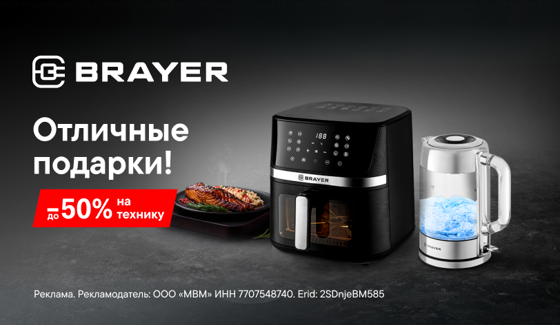 Живи ярко, наслаждайся каждым моментом! Обнови свой дом с техникой Brayer и создай комфортное пространство для своего счастья. Успей воспользоваться выгодой до 50% на технику только с 25 февраля по 31 марта.