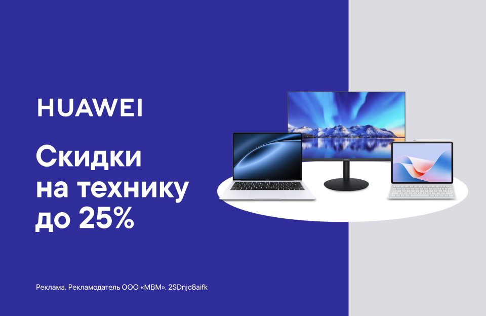 Подумываешь о технике HUAWEI? Держи ещё аргумент в пользу покупки: скидка до 25 процентов. Хочешь приобрести для учёбы, работы или просто побаловать себя? Не важно, главное, что теперь это можно сделать с заметной выгодной. Не упусти её.