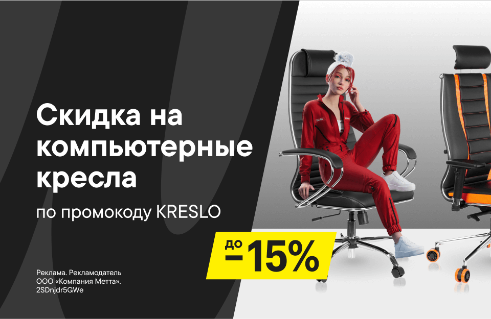 Это твой комфорт. Выбери компьютерное кресло и активируй скидку до 15% по промокоду KRESLO. Акция действует до 31 декабря.