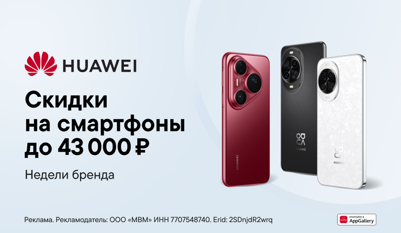Отличная новость: скидки на смартфоны Huawei до 43 000 рублей только в Недели Бренда Huawei.Успей забрать новый смартфон со скидкой!