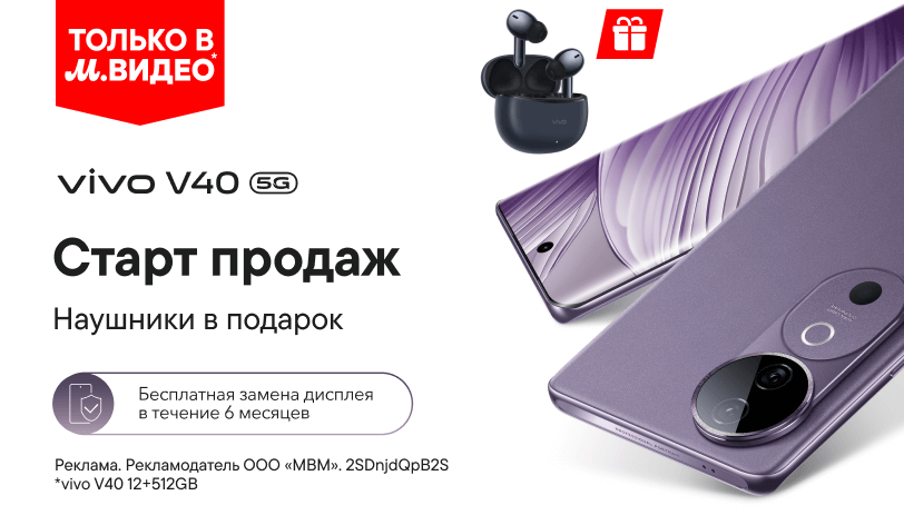 Пользователи, которые в период с 27 сентября 2024 г. по 27 марта 2025 г. приобрели устройства vivo V40 в любом официальном магазине М.Видео, Эльдорадо и официальном интернет магазине ru.vivo.com на территории Российской Федерации, и активировали его в любое время на территории Российской Федерации, получат: Гарантию защиты экрана. Кроме основной гарантии в соответствии с условиями, опубликованными на сайте https://www.vivo.com/ru/support/supportHome, дополнительная гарантия будет применяться ко всем вышеуказанным устройствам, приобретенным в любом официальном магазине в любом официальном магазине М.Видео, Эльдорадо и официальном интернет магазине ru.vivo.com на территории Российской Федерации, и активированным в стране приобретения. Гарантийные обязательства несет компания Общество с ограниченной ответственностью «ВИВО МОБАИЛ КОМЬЮНИКЕЙШЕНЗ РУС» зарегистрированной по адресу 143441, Московская область, Красногорский р-н, п/о Путилково, ул. 69 км МКАД, Бизнес Парк Гринвуд строение 25, литера 2Б, 2Б1, помещение 70.