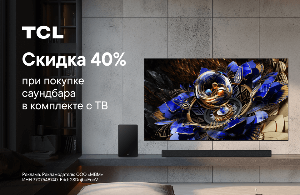А ты знаешь, что отличное изображение делает отличный звук выгоднее? Именно поэтому приобретая у нас саундбары TCL в комплекте с телевизором, ты получаешь на них скидку до 40%.Оцени сам этот приятный эффект.