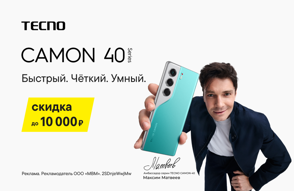 Быстрый. Чёткий. Умный. Все возможности AI уже в твоих руках.Познакомься с новинками от TECNO — серией смартфонов CAMON 40. Редактирование фото голосом, моментальное создание текстов, решение задач и десятки других возможностей искусственного интеллекта TECNO AI. Камера с режимом FlashSnap для мгновенного захвата движущихся объектов.Покупай TECNO CAMON 40 с выгодой до 10 000 ₽.