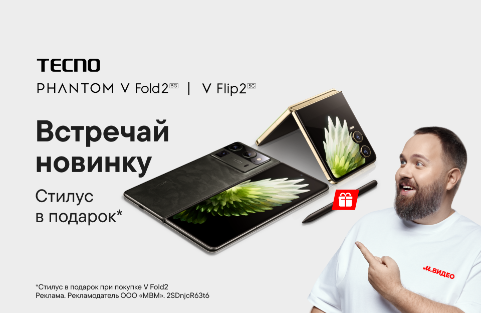Складные смартфоны TECNO PHANTOM V Fold2 и V Flip2 уже в продаже.Умный стилус в комплекте*. Только до 28 февраля.