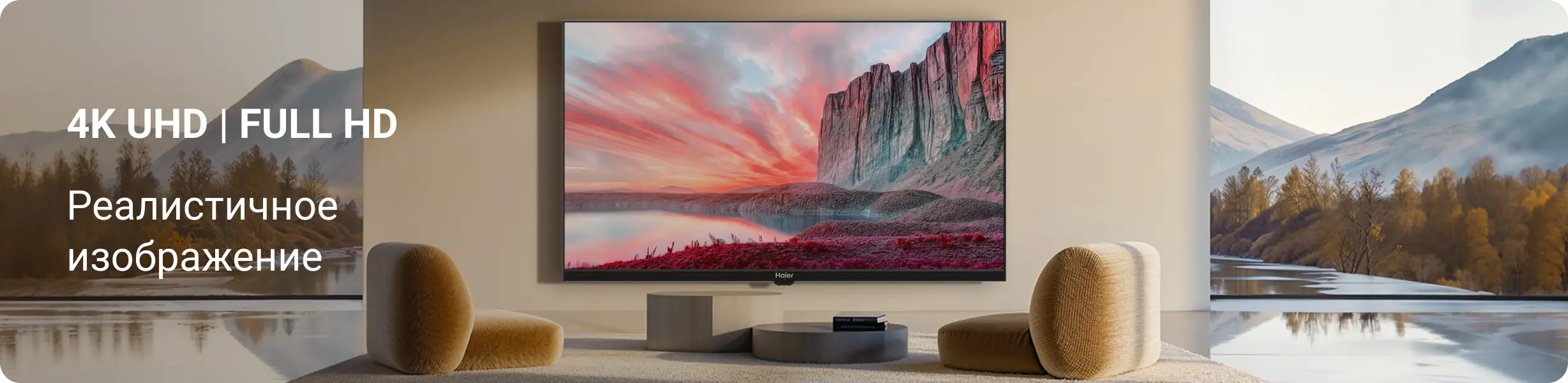 широкоэкранные телевизоры Haier станут окнами в самые дальние уголки мира вокруг тебя...