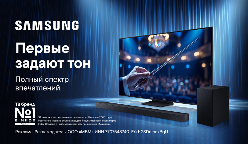 Звонкое предложениеКажется, что звук телевизоров Samsung не может быть лучше... Сомнения развеются при использовании ТВ и саундбара бренда вместе с фирменной технологией Samsung Q-Symphony только до тех пор, пока не сравнишь его со звучанием саундбаров бренда. И сделать это сейчас — просто как никогда. Мы дарим саундбар за покупку телевизоров Samsung из списка ниже: