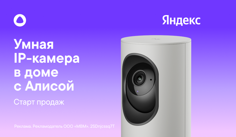 Старт продаж умной IP-камеры от Яндекс! Разрешение 2K, ночное видение и детекция движения работает в экосистеме умного дома с Алисой. Управляй голосом, настраивай зоны и получай уведомления. Обеспечь безопасность своего пространства — выбери новинку уже сегодня.
