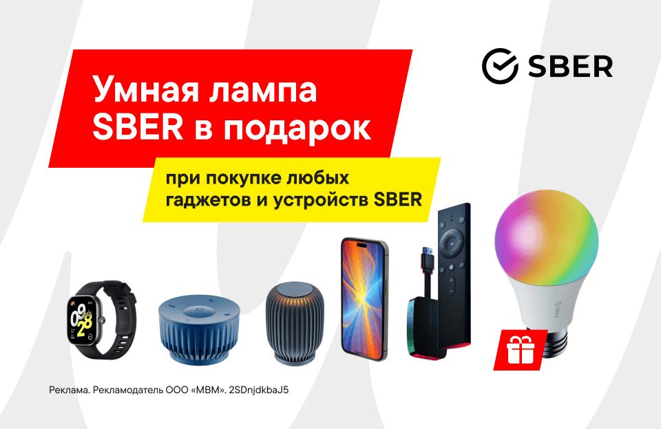 Умная лампочка Sber в подарок добавится в корзину автоматически.