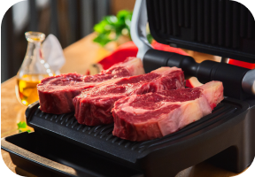 Воспользуйтесь режимом “Умный гриль”, чтобы приготовить сочный стейк с идеальной степенью прожарки. Накрывая мясо второй пластиной для жарки, вы сможете добиться оптимальной температуры с двух сторон.