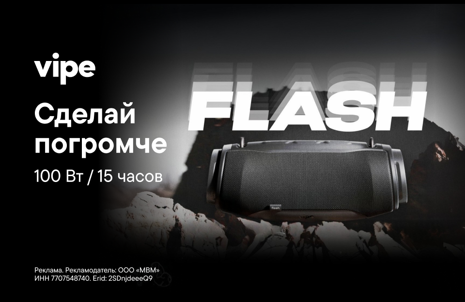 Купи новую колонку vipe FLASH и сделай погромче… Смелее, времени хватит: она работает до 15 часов на одной подзарядке. Наслаждайся любимой музыкой один или в компании.
