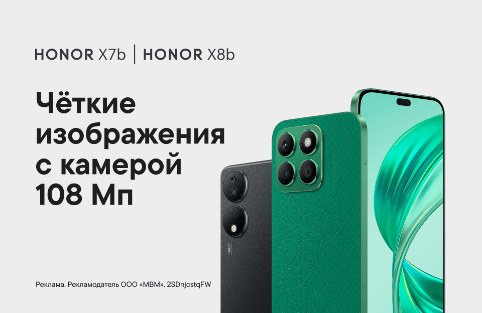 Открой мир больших возможностей с техникой HONOR.HONOR X7b и X8b — новые игроки в мире смартфонов.Стильный дизайн. Основные камеры 108 Мп. Большие и яркие экраны диагональю до 6,8".Объём памяти до 256 ГБ. Круто. Даже слишком.