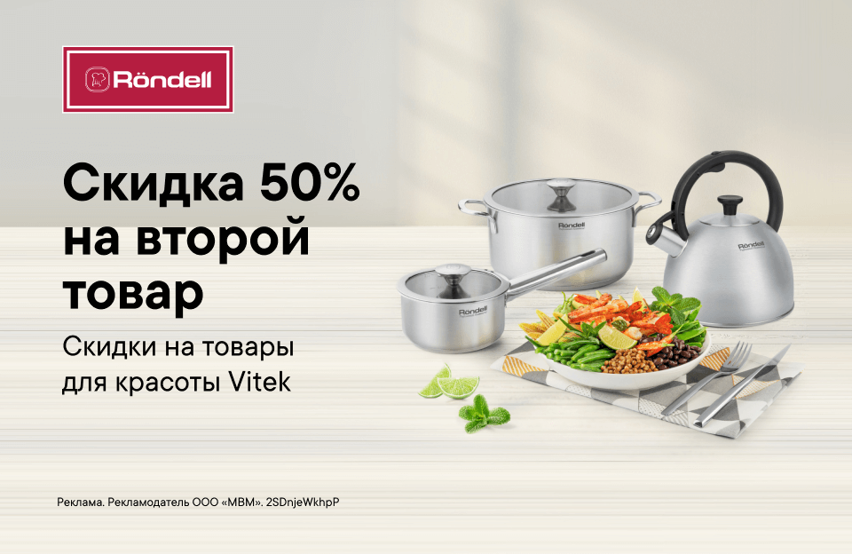 Выбери два товара Rondell в М.Видео и получи скидку 50% на один из них. Больше покупок — больше выгода!