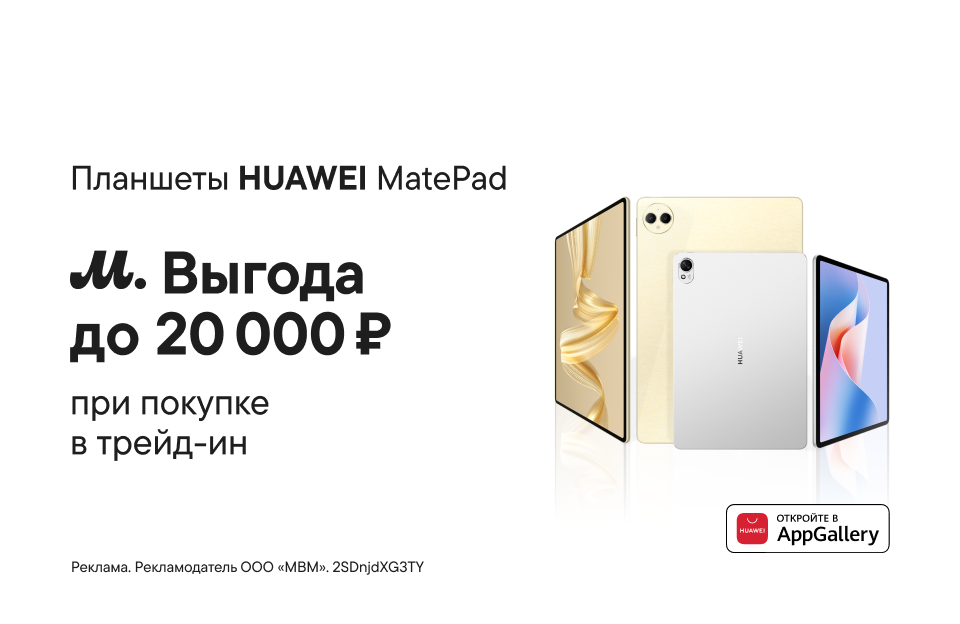Что нужно для творчества? Планшеты HUAWEI — лёгкость во всём. Сдай своё старое устройство в трейд-ин до 11 ноября и получи выгоду до 20 000 ₽ на новые HUAWEI MatePad Pro и HUAWEI MatePad 12 X.