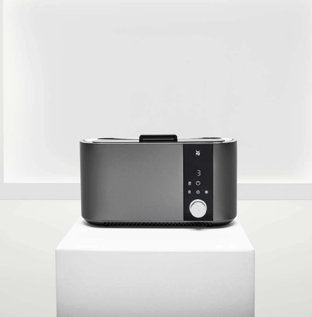 12 уровней поджаривания, функция проверки готовности, сенсорный дисплей и режимы размораживания, разогрева и приготовления бейглов — тостер WMF Master1 отвечает самым современным стандартам.