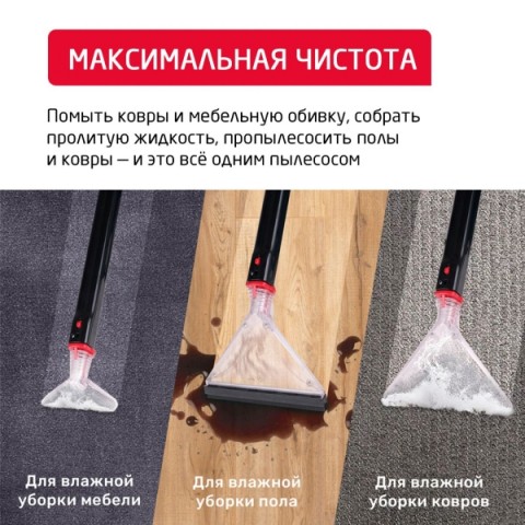 • Насадки:для мягкой мебели, для пола и ковров, щелевая