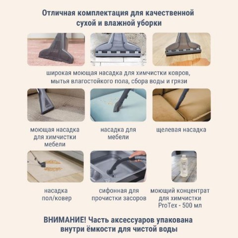 • Насадки:для мягкой мебели, для пола и ковров, щелевая
