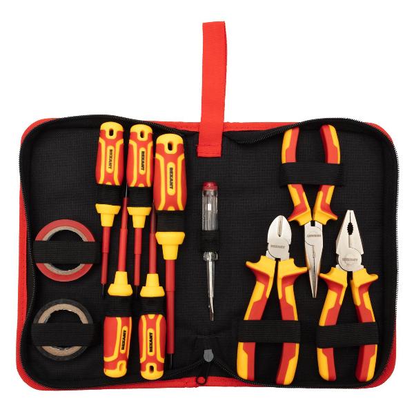 • Комплектация:2 шлицевые отвертки: SL 3x100 и SL 5,5x125 мм; 3 крестовые отвертки: PH 0x60, PH 1x80 и PH 2x100 мм; отвертка-индикатор; пассатижи; бокорезы (кусачки); длинногубцы, 2 изоленты ПВХ