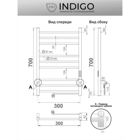 • Форма полотенцесушителя:I-образный