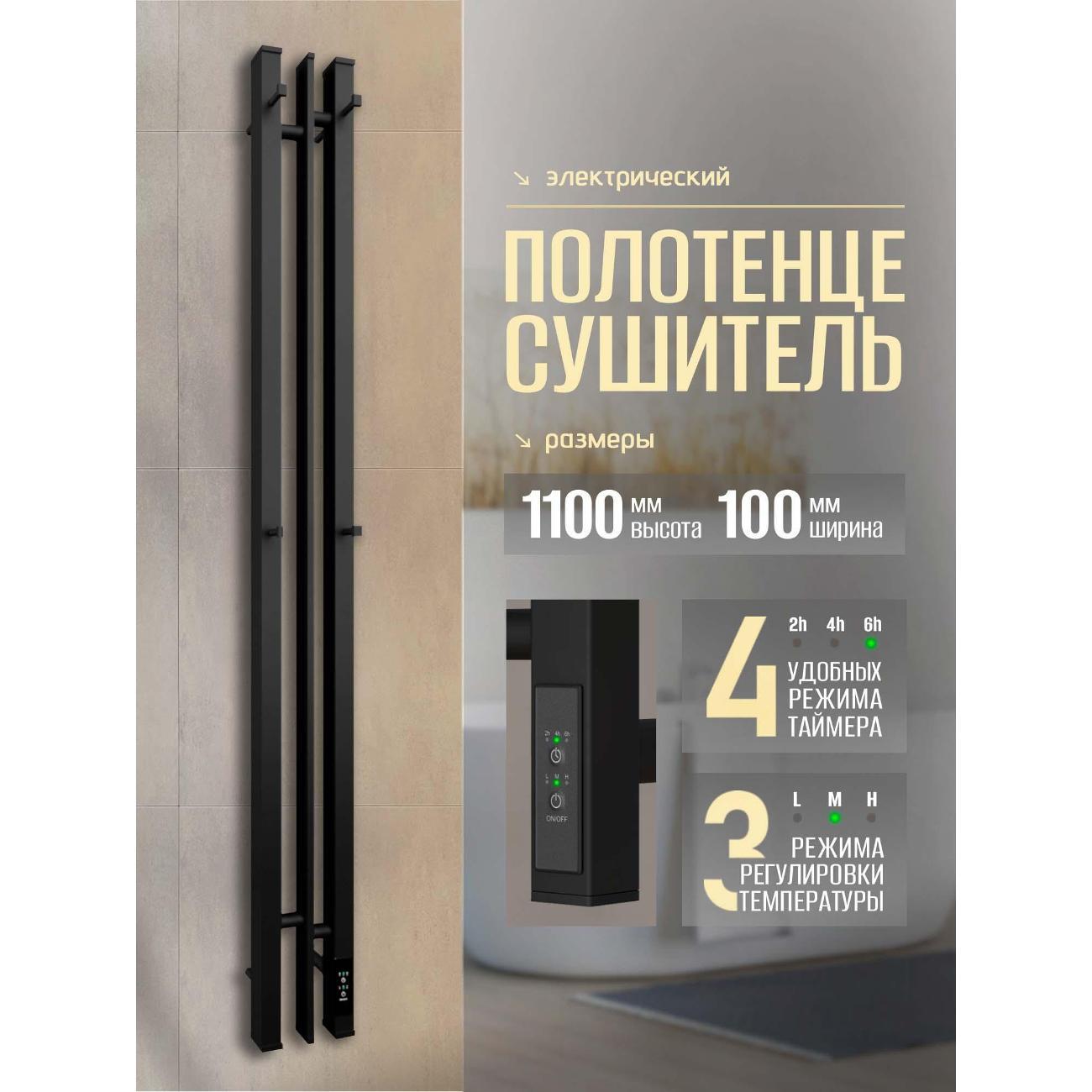 Полотенцесушитель Суховей Дюна DSL11101BM 1100x100 с крючками, черный матовый