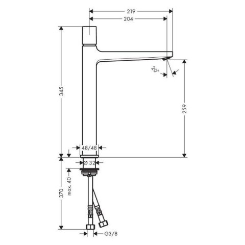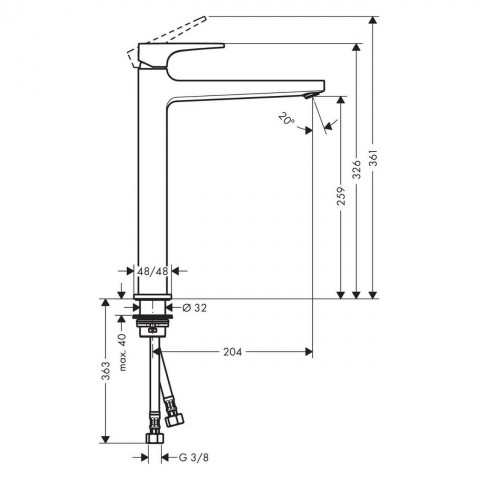 • Максимальная длина излива:20.4  см