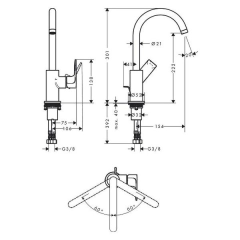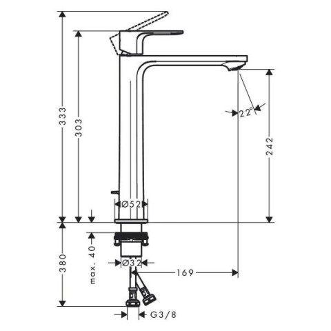 • Максимальная длина излива:22.5  см