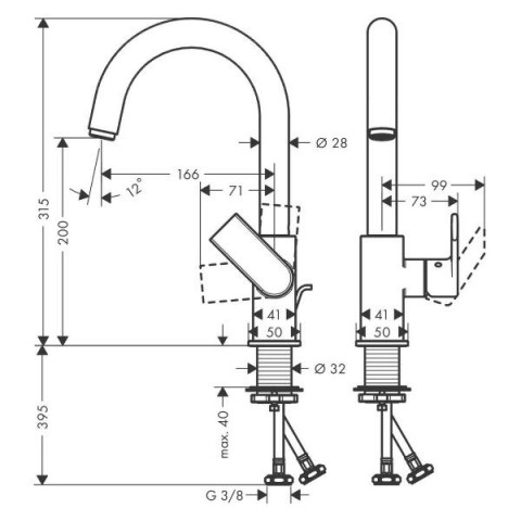 • Максимальная длина излива:37.1  см
