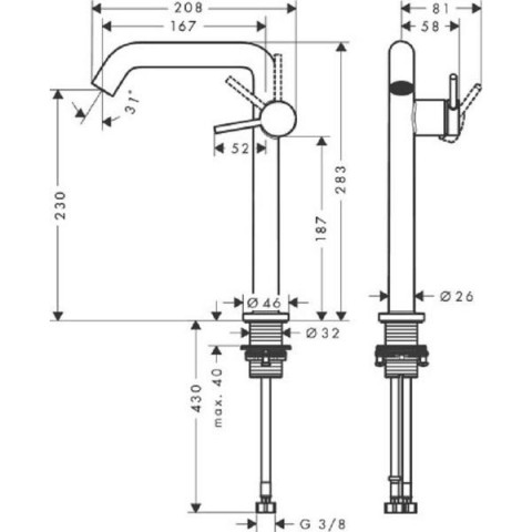 • Максимальная длина излива:16.7  см