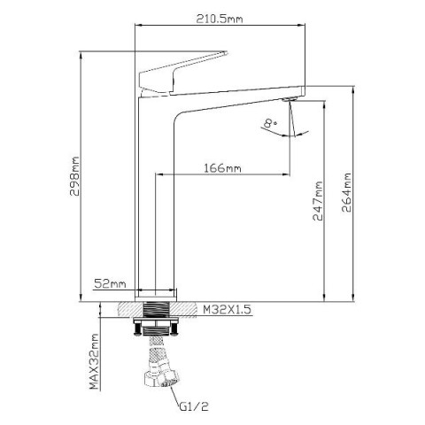 • Максимальная длина излива:16.5  см