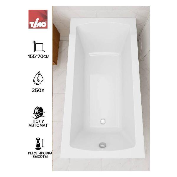 Ванна Timo Акриловая RITTA15570 155*70 на каркасе со сливом-