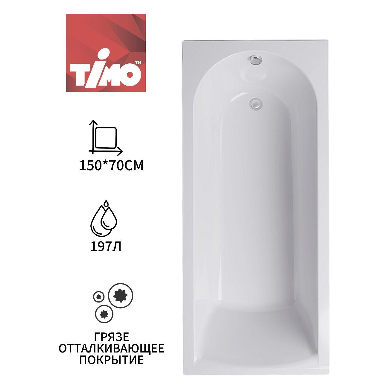Ванна Timo Акриловая MIKA 150*70 на каркасе с переливом полу
