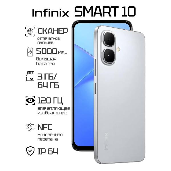 Смартфон Infinix SMART 10 3/64GB титановый серебристый