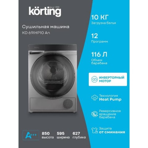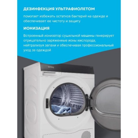 • Загрузка при сушке синтетика/хлопок/шерсть:5/10 кг