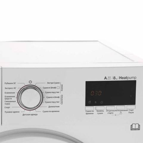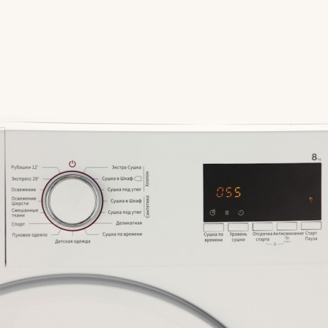 • Загрузка при сушке синтетика/хлопок/шерсть:4/8/0 кг