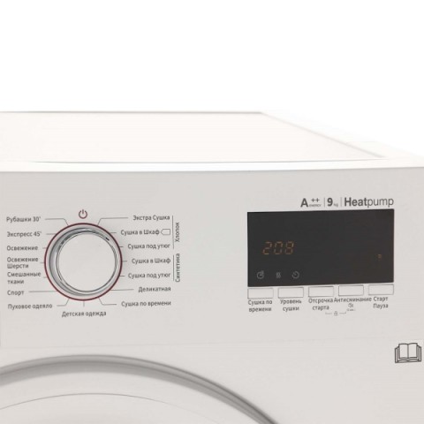• Загрузка при сушке синтетика/хлопок/шерсть:4.5/9/0 кг