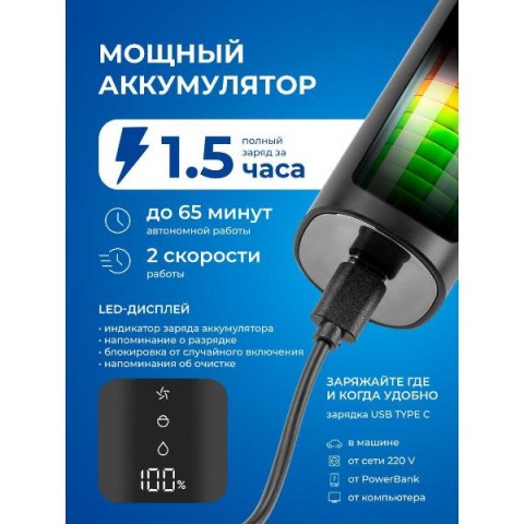 • Время зарядки аккумулятора:до 1 ч 30 мин