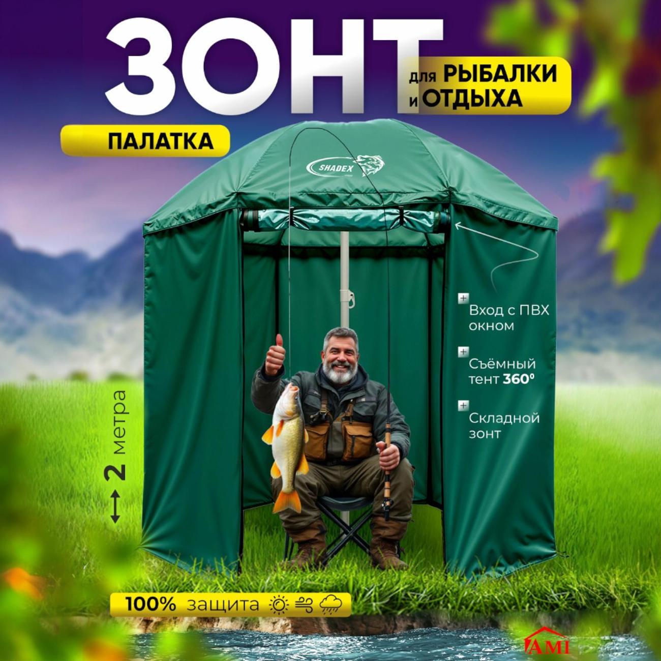 Зонт садовый Ami ShadeX зеленый для рыбалки с тентом
