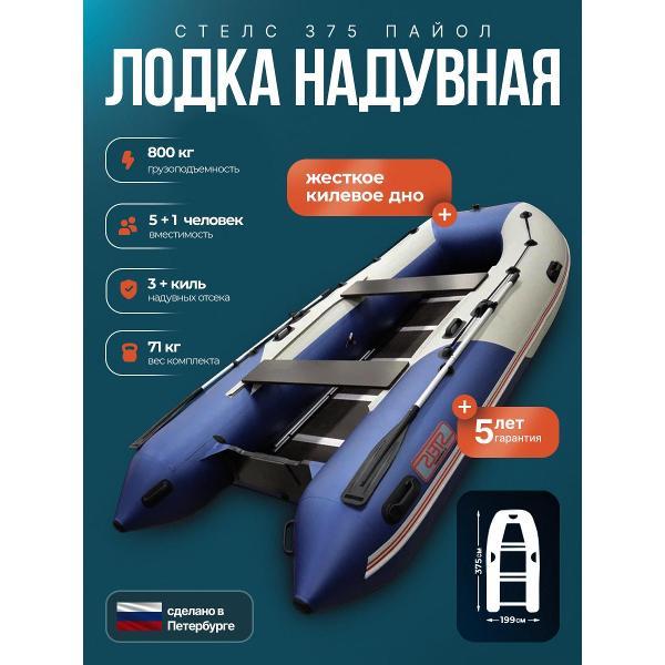 Лодка пвх под мотор Hunterboat Стелс 375 белая с синим
