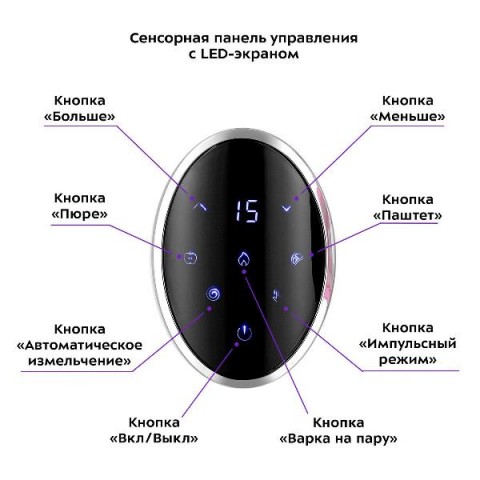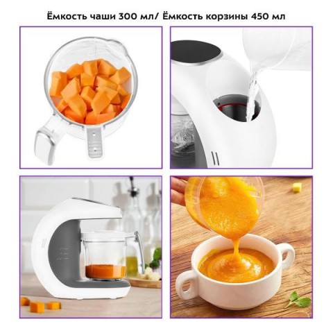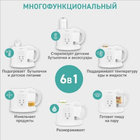 • Функции:измельчение, готовка на пару, стерилизация, размораживание, подогрев детского питания