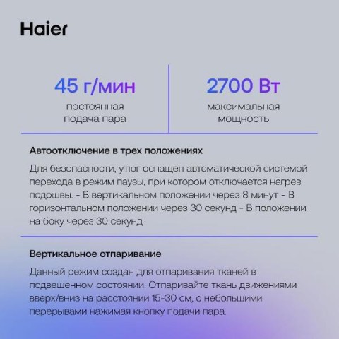 • Функции:автоматическая регулировка температуры, автоматический контроль оптимальной температуры, вертикальное отпаривание, противокапельная система