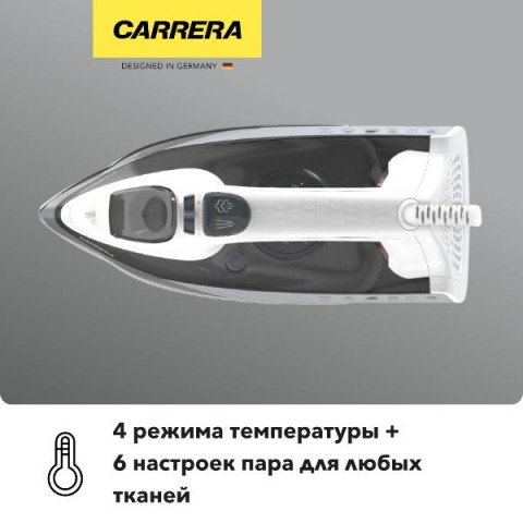 • Функции:автоматическая регулировка силы пара, автоматический контроль оптимальной температуры, вертикальное отпаривание, противокапельная система