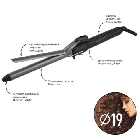 • Диаметр щипцов для завивки:19 мм
