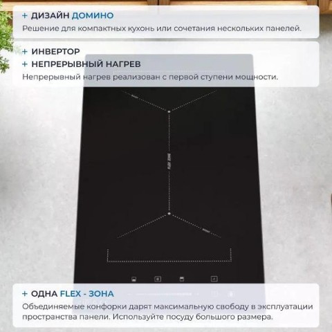 • Расширение зоны нагрева конфорок:индукционный мост