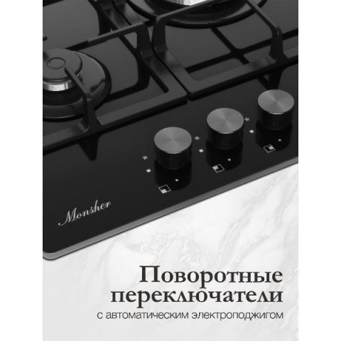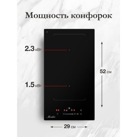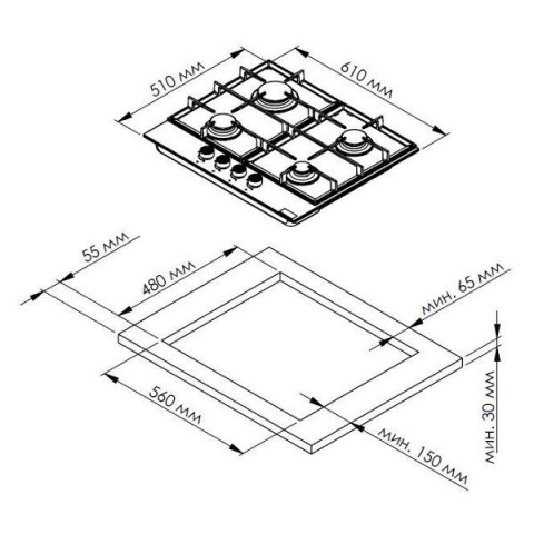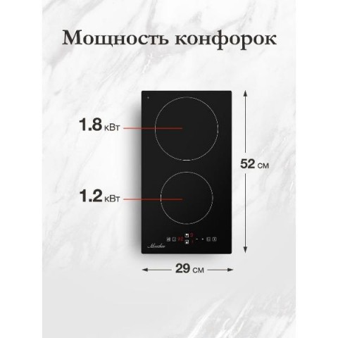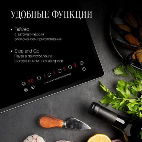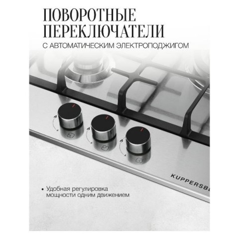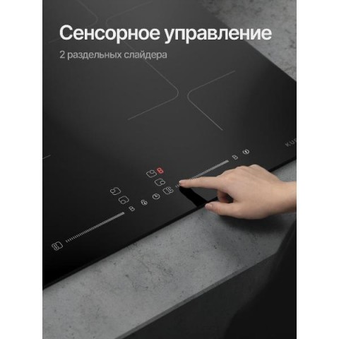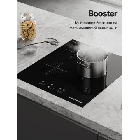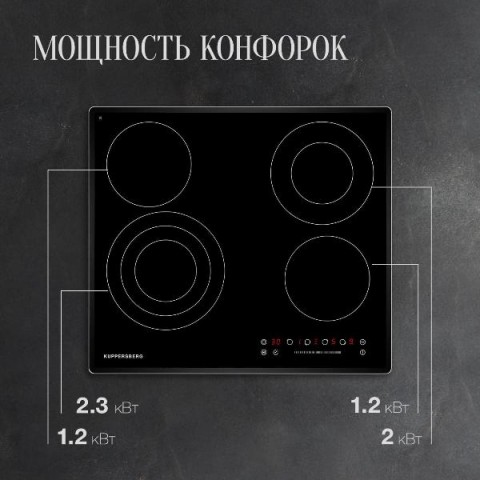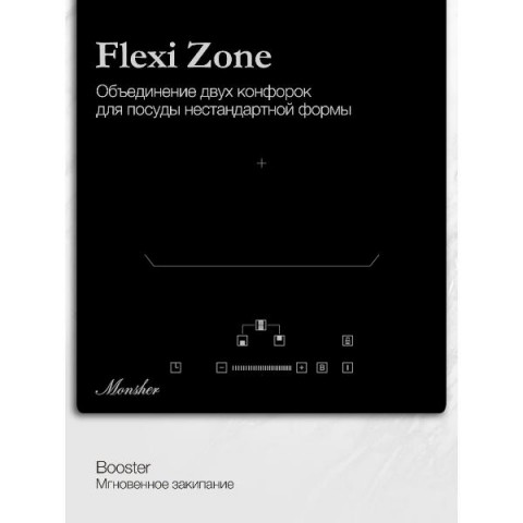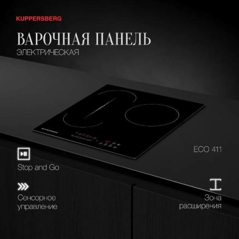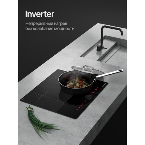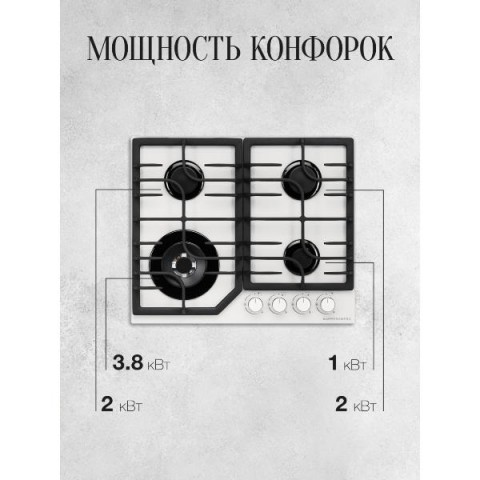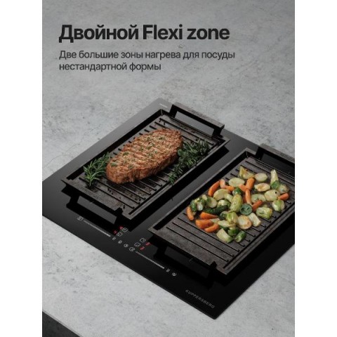 • Расширение зоны нагрева конфорок:на 4-х конф.